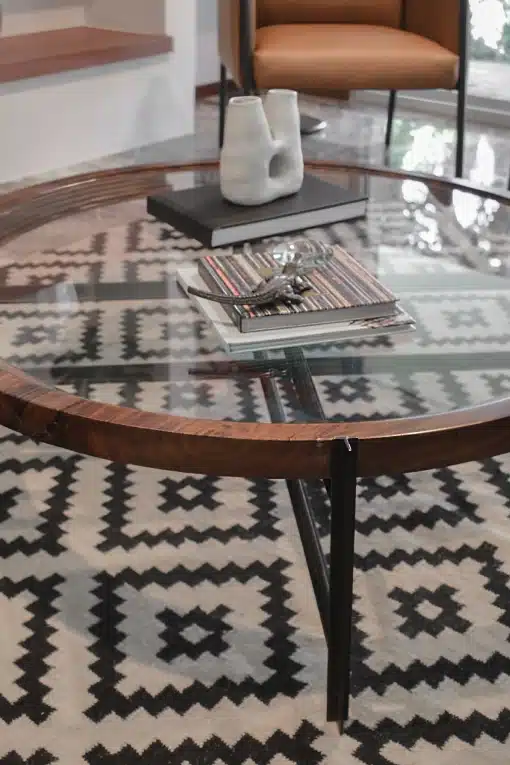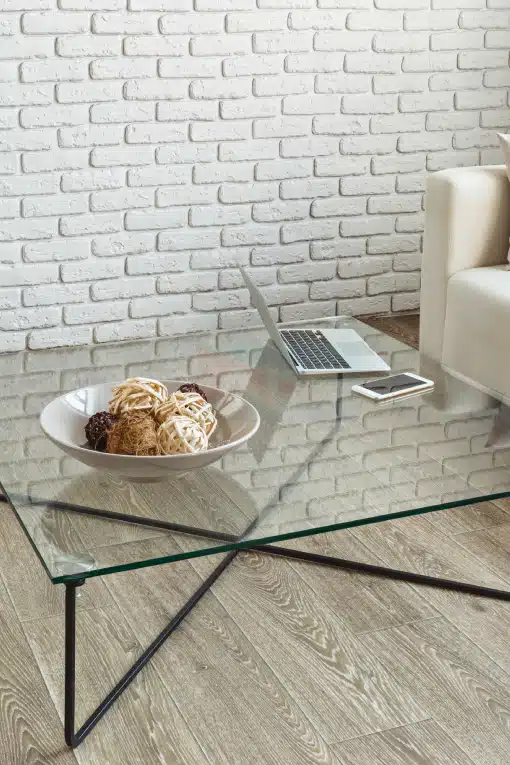 Mesa de centro de vidrio para sala en medidas personalizadas y acabados premium. Vidrio templado, bordes pulidos. Vidriería – Aluminios del Sur.