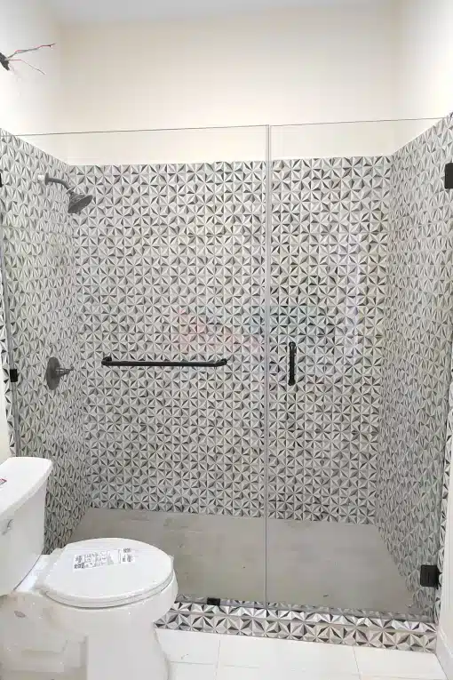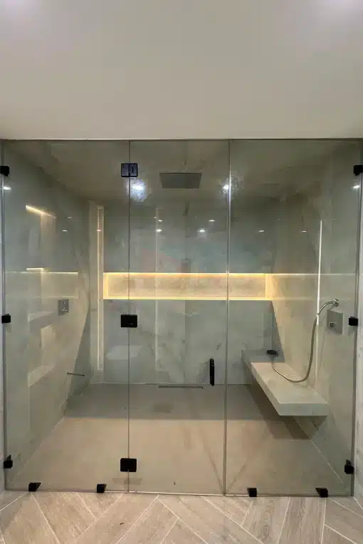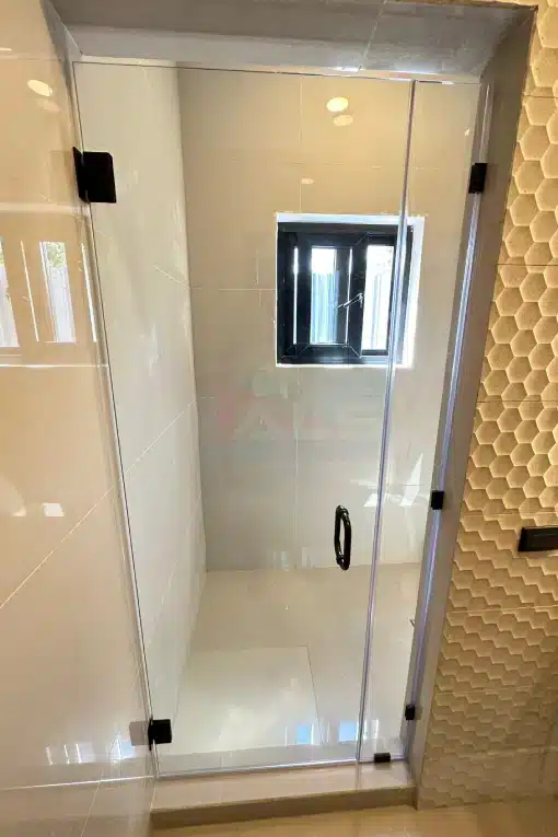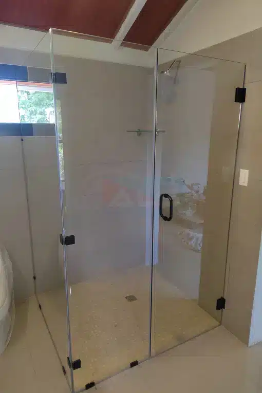 ✔️ Diseño elegante y funcional: Puertas abatibles fabricadas en vidrio templado o laminado de 10 mm, con opciones en acabado claro o arenado para adaptarse al estilo de cada baño.